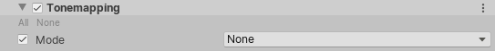 # Tonemapping Tonemapping is the process of remapping the HDR values of an image to a new range of values. Its most common purpose is to make an image with a low dynamic range appear to have a higher range. See Wikipedia: Tone mapping. ## Using Tonemapping **Tonemapping** uses the [Volume](Volumes.md) system, so to enable and modify **Tonemapping** properties, you must add a **Tonemapping** override to a [Volume](Volumes.md) in your Scene. To add **Tonemapping** to a Volume: 1. In the Scene or Hierarchy view, select a GameObject that contains a Volume component to view it in the Inspector. 2. In the Inspector, navigate to **Add Override** > **Post-processing**, and click on **Tonemapping**. The Universal Render Pipeline applies **Tonemapping** to any Camera this Volume affects. ## Properties ![](Images/Inspectors/Tonemapping.png) | **Property** | **Description** | | ------------ | ------------------------------------------------------------ | | **Mode** | Select a tonemapping algorithm to use for color grading. The options are: