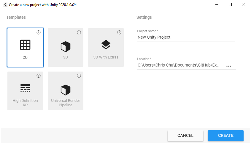 1. Create a new Project using the [2D template](https://docs.unity3d.com/Manual/ProjectTemplates.html).