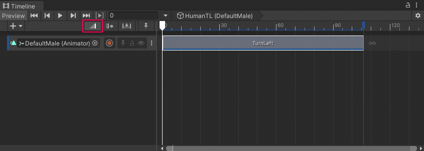 # Animate a humanoid This workflow demonstrates how to use a Timeline instance to animate a humanoid model so that it turns left and begins to walk. Although this workflow uses a humanoid, you can use this animation method for any GameObject. This workflow uses the humanoid model named `DefaultMale` and animation source assets from the [Gameplay Sequence sample](samp-gameplay-demo.md) for its examples. Consult [Timeline Samples](samp-overview.md) for information on the samples available from the Timeline package and how to import these samples into your projects. This workflow starts with a Timeline instance that has an empty Animation track bound to the `DefaultMale` humanoid model. ![](images/tl-human-start.png) _The `DefaultMale` humanoid model linked to a Timeline instance (`HumanTL`) with an empty Animation track bound to the same model_ While animating the humanoid model, this workflow demonstrates how to do the following: 1. [Add and position Animation clips](#addclips). 1. [Match clip offsets](#matchclips). 1. [Create blends between clips](#blendclips). 1. [Manually adjust clip offsets to reduce foot sliding](#reduceslide). ## Add and position Animation clips 1. From your Project, drag an animation source asset into the Animation track to add a new Animation clip. Dragging a source asset adds an Animation clip on the same track. The duration of the Animation clip matches the source asset. 1. To position, resize, or trim the Animation clip in the Content view, select **Mix mode** as the Edit mode. There are [three Edit modes](clip-overview.md) that affect the editing behavior of the Timeline window. When the Timeline window is in **Mix mode**, you can drag to position, trim, and blend clips. You can also select an Animation clip to modify its [Animation clip properties](insp-clip-anim.md), including its Start, End, and Duration, in the Inspector window. ![](images/tl-mix-mode-turnleft-clip.png) _The Mix mode (red) is the selected Edit mode. The `TurnLeft` clip is positioned to start at frame 0._ 1. Add a second Animation clip. This workflow adds a walk clip (`Walk`), positions the clip so it starts immediately after the first clip, and it resizes the second clip to include one loop. ![](images/tl-human-all-clips.png) _Animation track with the `TurnLeft` and `Walk` Animation clips_ 1. Play the Timeline instance. In this example, the `DefaultMale` animation jumps between each Animation clip because its position and rotation at the end of each clip does not match the position and rotation at the start of the next Animation clip. ![](images/spec-human-before-match.png) _The `DefaultMale` jumps between the `TurnLeft` Animation clip, which ends at frame 105 (A), and the `Walk` Animation clip, ghost model which starts at frame 106 (B)_ ## Match clip offsets To fix animation jumping between clips, match the offset of each Animation clip. The Timeline window provides [different methods for matching offsets](clip-match.md). This workflow demonstrates how to match an Animation clip with the previous clip. In this workflow, to match the TurnLeft clip with the previous clip, follow these steps: 1. Select the TurnLeft clip. 1. Right-click the selected clip and choose **Match Offsets to Previous Clip** from the context menu. The position and rotation of the humanoid at the start of the second Animation clip (`Walk`) matches the position and rotation of the humanoid at the end of the first Animation clip. ![](images/spec-human-after-match.png) _The ghosted `DefaultMale` at the start of the `Walk` Animation clip, which starts at frame 106 (B), matches the position and rotation of the `DefaultMale` at the end of the `TurnLeft` Animation clip, which ends at frame 105 (A)_ 1. Play the Timeline instance again. Although the position and rotation of the humanoid matches, there is still a jump between the two Animation clips because the humanoid is in different poses: * At the end of the `TurnLeft` Animation clip, the feet are on the ground and the arms are slightly raised. * At the start of the `Walk` Animation clip, the left leg is off the ground and the arms are in a relaxed position. To remove the jump and to transition between these two poses, you can [create a blend](#blendclips). ## Create blends between clips Create a blend to seamlessly mix between two different animations or poses. The Timeline window includes many different ways to [create a blend](clip-blend.md) between Animation clips. To create a blend, move an Animation clip until it overlaps another Animation clip. You might need to adjust the size of the Animation clips, the Blend Area, the Clip In value, and the shape of each Blend Curve to create a smoother transition between the two poses. For example, in the transition between the `TurnLeft` clip and the `Walk` clip, the `Walk` clip was repositioned to start at frame 83. The rest of the clip properties are unchanged from their default values. ![](images/tl-human-blend.png) _Overlap two clips to create a smooth transition between two Animation clips_ As the `TurnLeft` clip transitions to the `Walk` clip, the blend removes the obvious jump between poses. The transition between most body parts appears natural, however in this case, the blend between the different positions of the foot results in an unnatural slide. ## Reduce foot sliding To reduce foot sliding, manually adjust the offset of an Animation clip so that the position of the foot changes less drastically. To manually adjust the offset, follow these steps: 1. Select the Animation clip in the Timeline window and, in the Inspector window, expand **Animation Playable Asset**. ![](images/insp-clip-anim-playable-walk.png) _The **Animation Playable Asset** properties include the **Clip Transform Offsets**_ In this example, the X Position. Z Position, and Y Rotation of the **Clip Transform Offsets** for the Walk Animation clip is not zero because a **Match Offsets to Previous Clip** was performed earlier in this workflow. Match to a 
