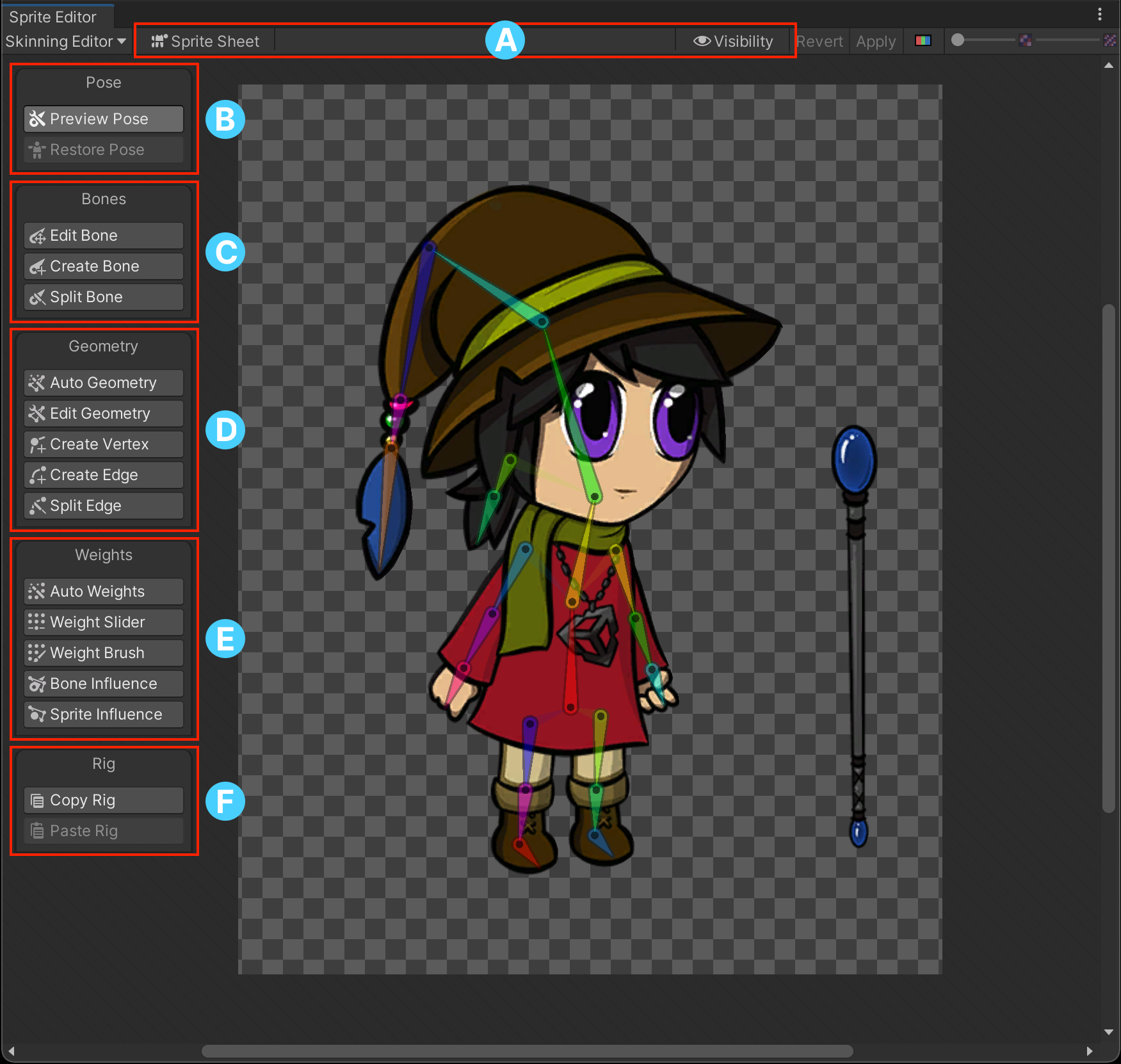 Use the Geometry tools to generate and edit the meshes of the different Sprites that make up your character.