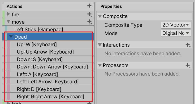 : For details about how Action Maps, Actions, and Bindings work, see documentation on Actions.