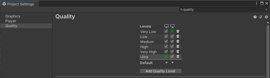 1. Go to Edit > Project Settings and select the Quality category.