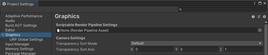 1. Go to Edit > Project Settings and select the Graphics category.