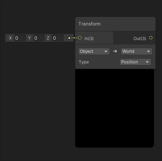 | Creates a sphere mask originating from input Center. | Returns the result of transforming the value of input In from one coordinate space to another. |