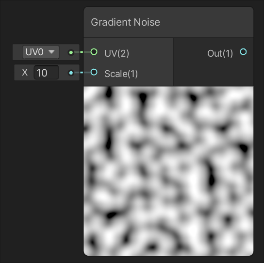 Generates a gradient, or Perlin, noise based on input UV. Generates a simple, or Value, noise based on input UV.