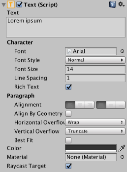 | Best Fit | Should Unity ignore the size properties and simply try to fit the text to the control's rectangle? |