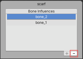 To add a bone as an influencer to the currently selected Sprite Mesh, select the bone in the editor window and select Add (+) to add it to the list.
