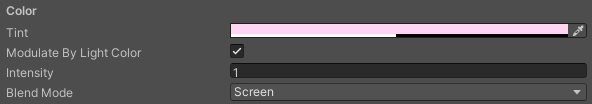 | Tint | Changes the tint of the lens flare. If this asset is attached to the light, this property is based on the light tint. |