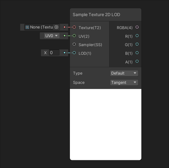 Samples a Texture 2D Array at an Index and returns a color value for use in the shader. Samples a Texture 2D at a specific LOD and returns a color value for use in the shader.