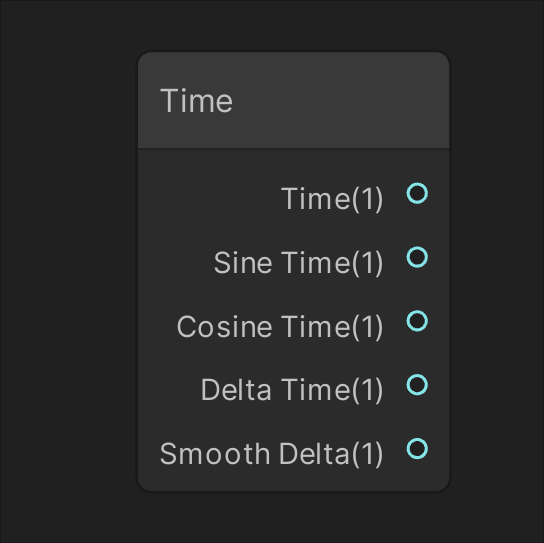Defines a constant Float value in the shader using a Slider field. Provides access to various Time parameters in the shader.