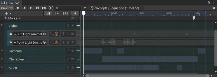 TimelineGameObject. The Timeline instance namedGameplaySequencedisplays in the Timeline window.