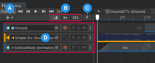 (D) The Track list displays a Track header for each track in the Timeline instance or Timeline Asset. The options available for each Track Header depends on the type of track.